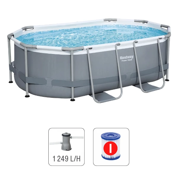Каркасный овальный бассейн Bestway 305х200х84 см + фильтр-насос 1249 л/ч (5614A BW).