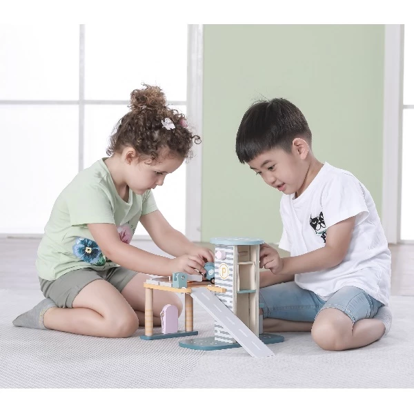 Развивающая игрушка тренирует воображение, мышление, зрительно-моторную координацию, социальные навыки. Помогает детям придумывать истории для игр и общаться. Паркинг от PolarB идеален для творческих игр. Ребенок п ...