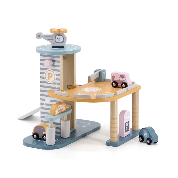 С деревянным игровым набором PolarB Паркинг у ребенка появится основа для сюжетно-ролевых игр. Набор с тремя уровнями, вертолетной площадкой, автомойкой, заправкой, пандусом и лифтом. В комплекте также 3 машинки и вертолет для увлекательных игр детей от 2 лет преддошкольного возраста.