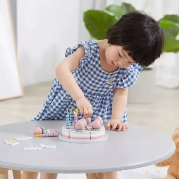 Этот праздничный торт — идеальная игрушка для самых маленьких любителей вечеринок и отличное дополнение к кухонному набору. Он способствует развитию воображения, творчества, а также помогает в социальном развитии и ролевых играх.