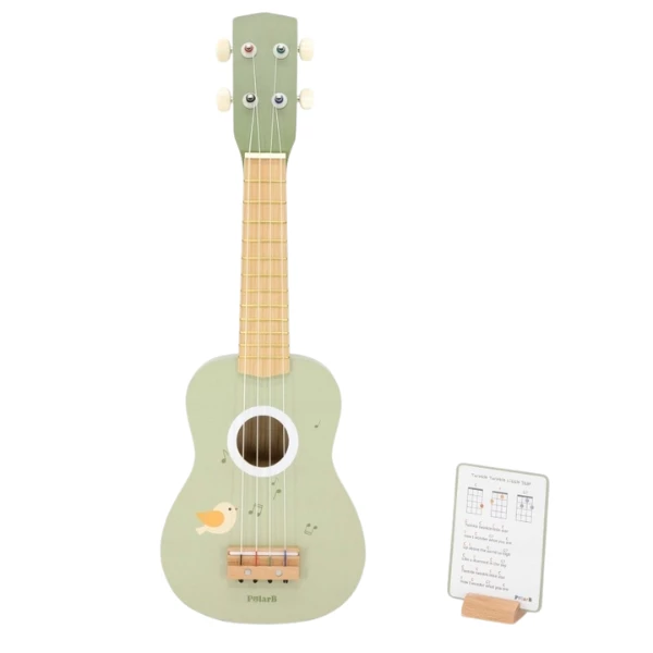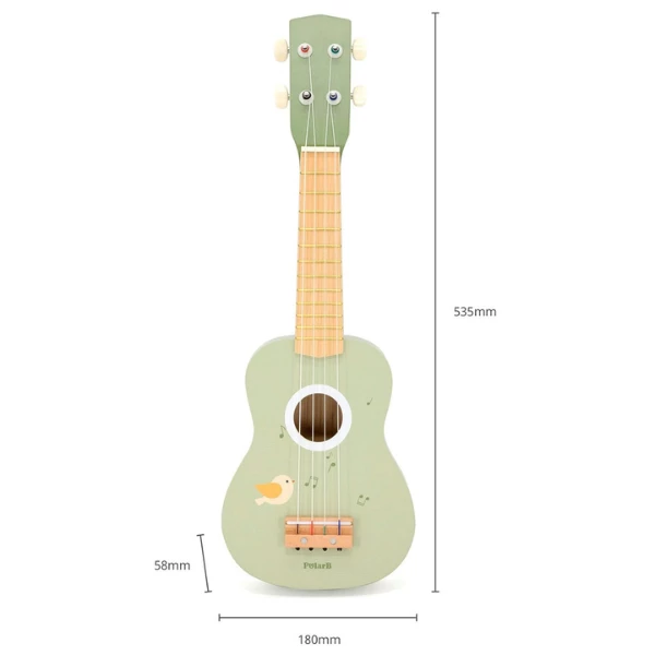 Детская деревянная гитара-укулеле "Птичка" от PolarB — идеальный первый шаг в мир музыки! Этот очаровательный инструмент с четырьмя мягкими нейлоновыми струнами создан специально для маленьких музыкантов. Он помогает развивать слух, чувство ритма, мелкую моторику и воображение, превращая обучение в увлекательную игру.