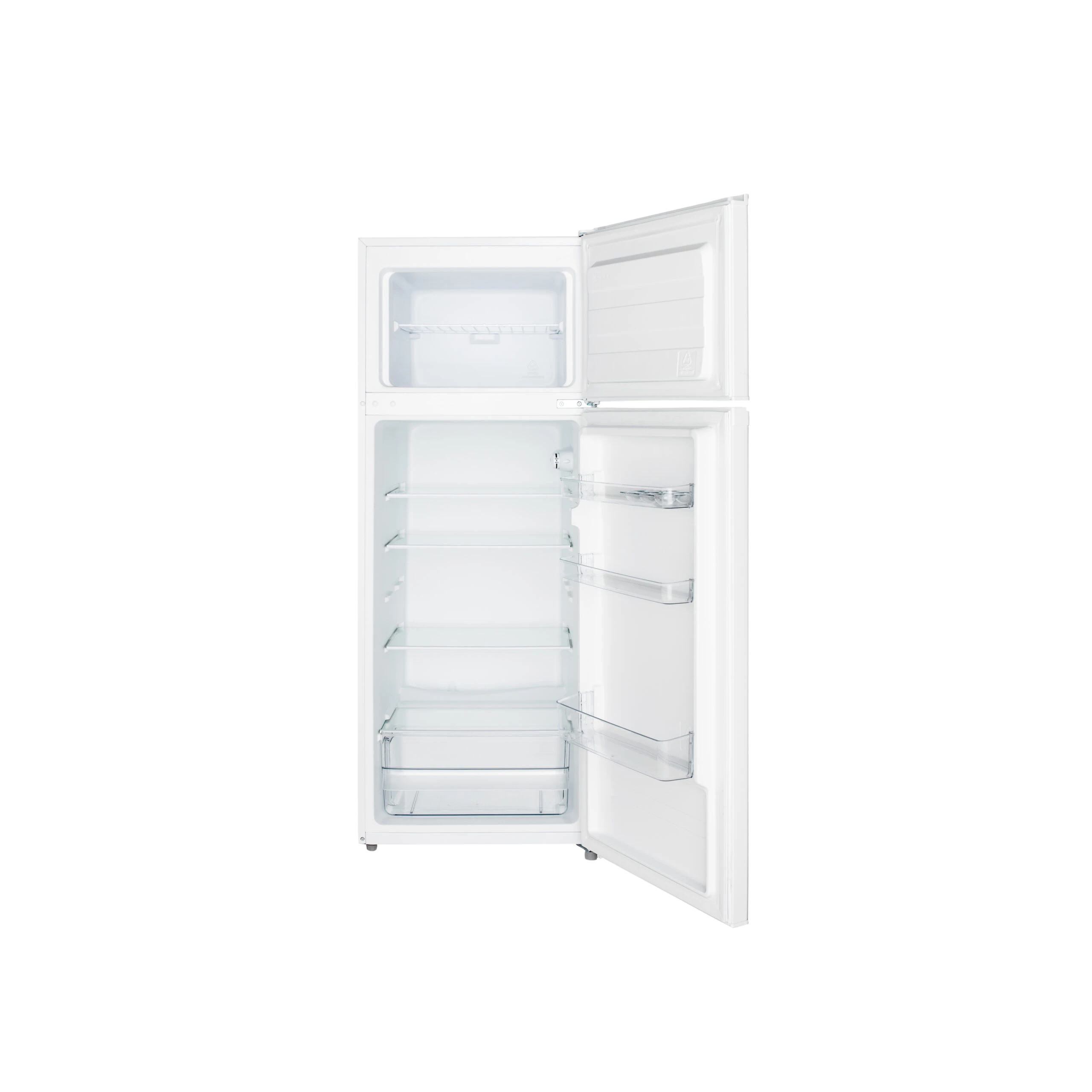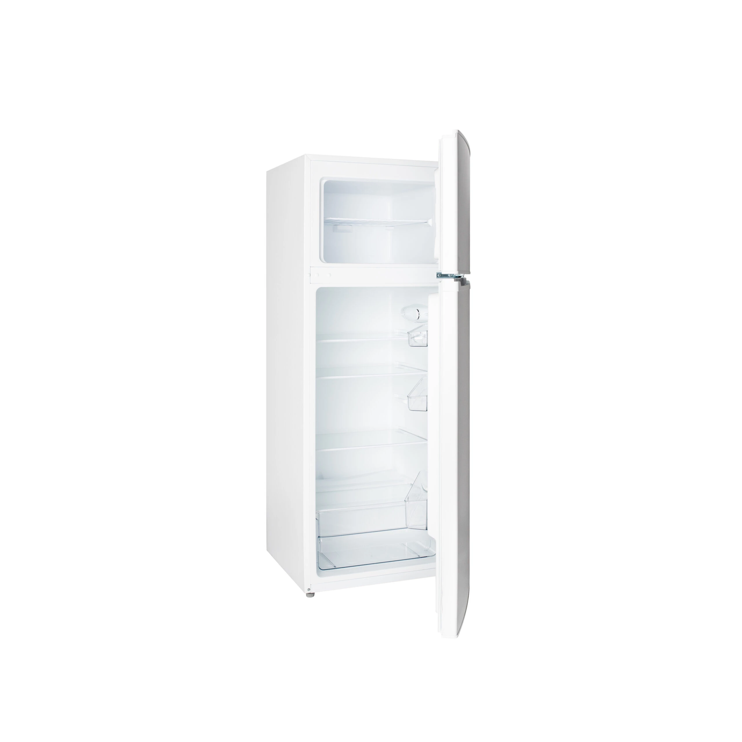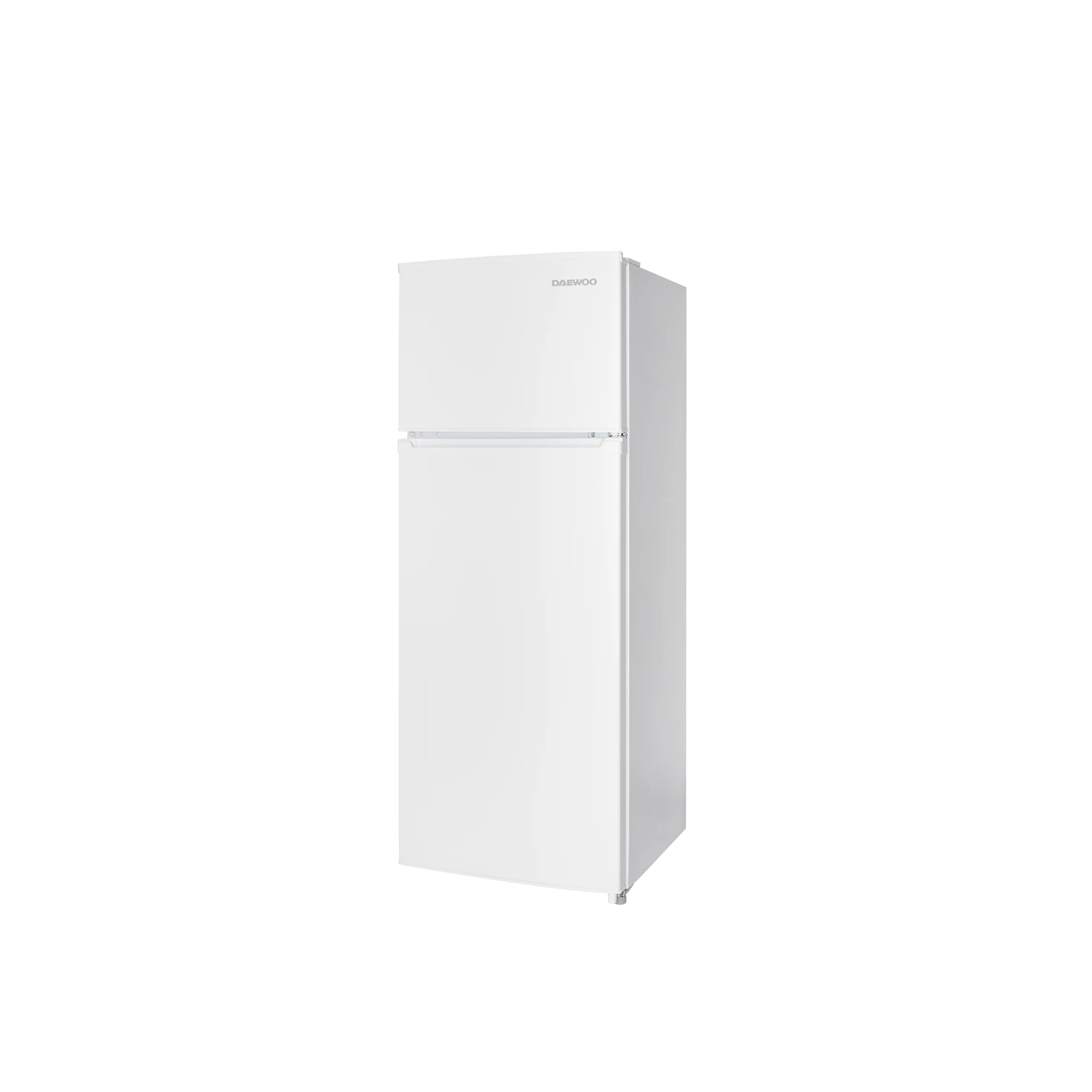 Frigider Daewoo DTS-207MEW, 204 L (163L+41L), 143cm, Static, clasa E, alb, termostat reglabil, usi reversibile, compartiment legume-fructe, picioare reglabile