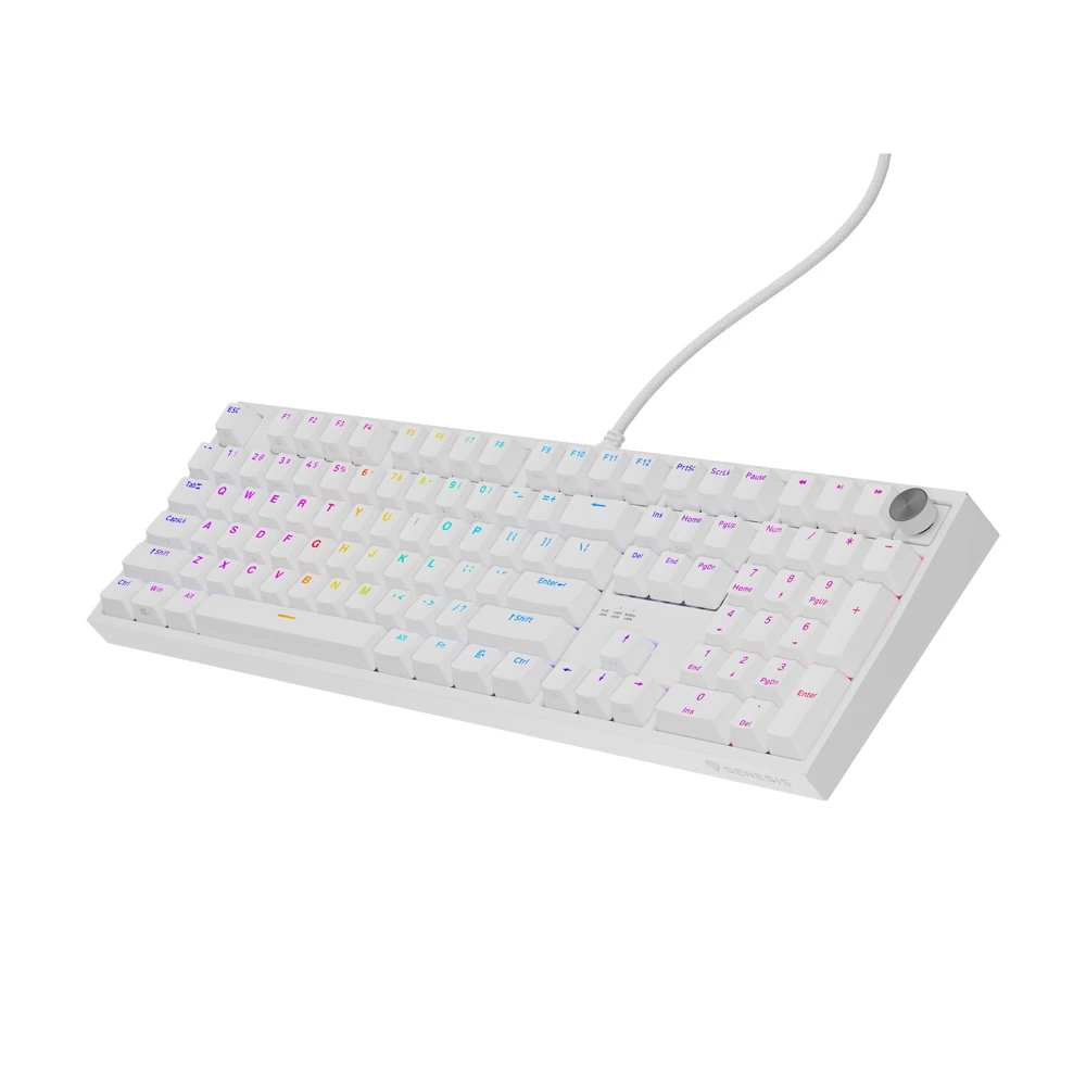 Echipata cu switch-uri Gateron Yellow Pro, aceasta tastatura ofera o apasare liniara, fara feedback tactil sau sunet de clic, ceea ce o face ideala pentru sesiuni lungi de tastare sau jocuri in care este nevoie de viteza si precizie. Punctul de actuare este de 2 mm, iar forta necesara pentru activare este de 50 g, cu un timp de raspuns impresionant de 1 ms. Durata de viata a fiecarui switch este de pana la 50 de milioane de apasari, asigurand o utilizare indelungata fara pierderi de performanta. Layout-ul este in format US ANSI, cu un total de 107 taste, dintre care 11 sunt taste multimedia, pentru control rapid al functiilor esentiale precum volum, redare sau acces la aplicatii.