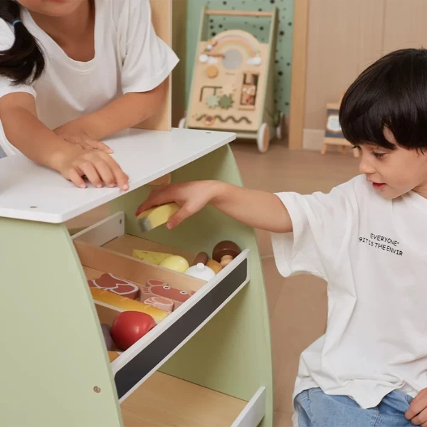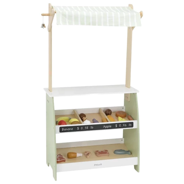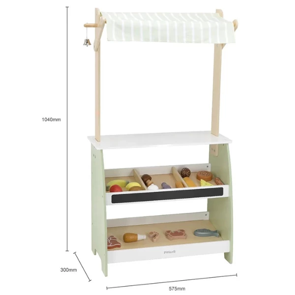 Деревянный игровой набор Viga Toys PolarB «Продуктовая лавка» превращает игру в магазин в настоящее приключение. Выполненный из прочного массива дерева и окрашенный в стильные пастельные оттенки зеленого, он станет любимым уголком для игр вашего ребенка.