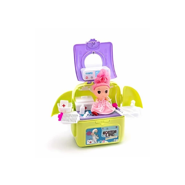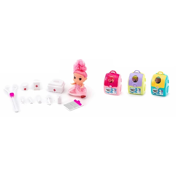 Этот игровой набор включает 12 миниатюрных предметов и куклу высотой 2,5 дюйма, с медицинскими принадлежностями, доступными в трёх разных цветах. В комплекте идёт удобный рюкзак для хранения всех предметов, что позволяет легко брать набор с собой куда угодно. Куклы и аксессуары разнообразны и подходят для сюжетных игр, в которых можно оказывать медицинскую помощь и заботиться о куклах.