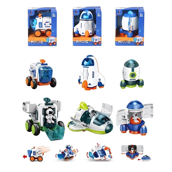 Это инженерные космические автомобили с инерционным механизмом и непрозрачными колёсами станет отличным дополнением к игровой коллекции вашего ребёнка. Просто оттяните машину назад, и она поедет вперёд без необходимости в батарейках, благодаря инерционному механизму. Модель выполнена из прочного пластика и способна выдержать активные игры.
