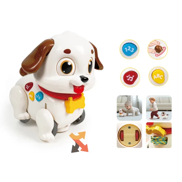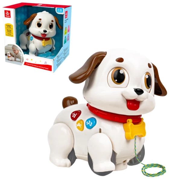 Интерактивный щенок от HOLA TOYS — это забавная и развивающая игрушка для малышей от 6 месяцев. Щенок самостоятельно двигается, подбадривая малыша ползти за ним, или может быть потянут за специальную верёвочку. Во время движения щенок весело машет ушками и хвостиком, мигает огоньками и издаёт звуки, которые привлекают внимание и стимулируют развитие моторики, координации и сенсорного восприятия.