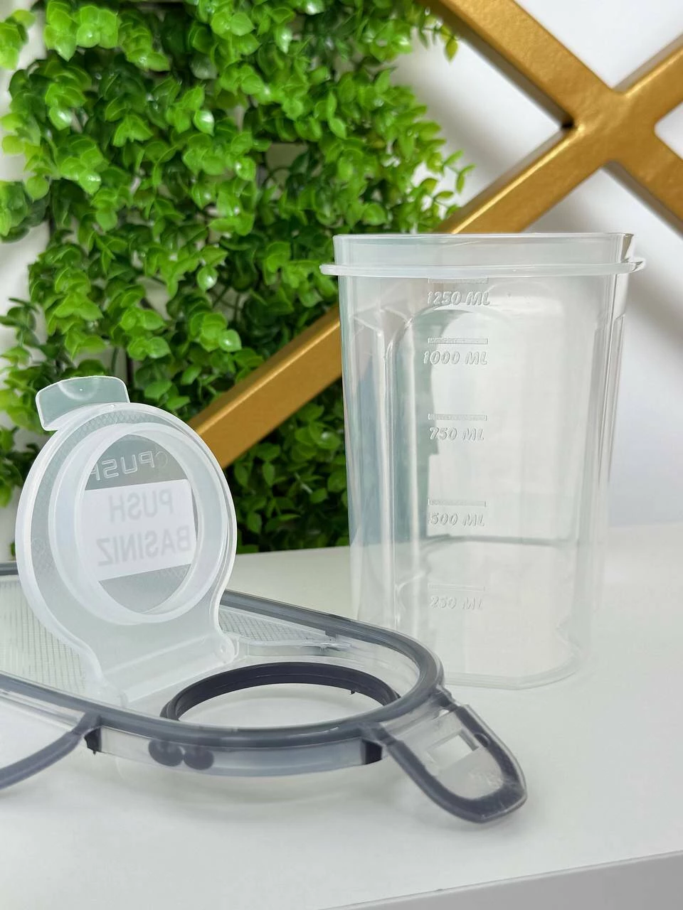 Современный и практичный контейнер, созданный для поддержания порядка и свежести на твоей кухне. Прозрачный дизайн и шкала объёма до 1250 мл обеспечивают полный контроль над содержимым, а крышка с герметичным замком и клапаном для дозирования гарантирует удобное и безопасное использование.