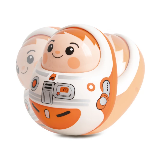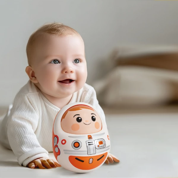 Игрушка возвращается в вертикальное положение после наклона, развивая координацию движений.