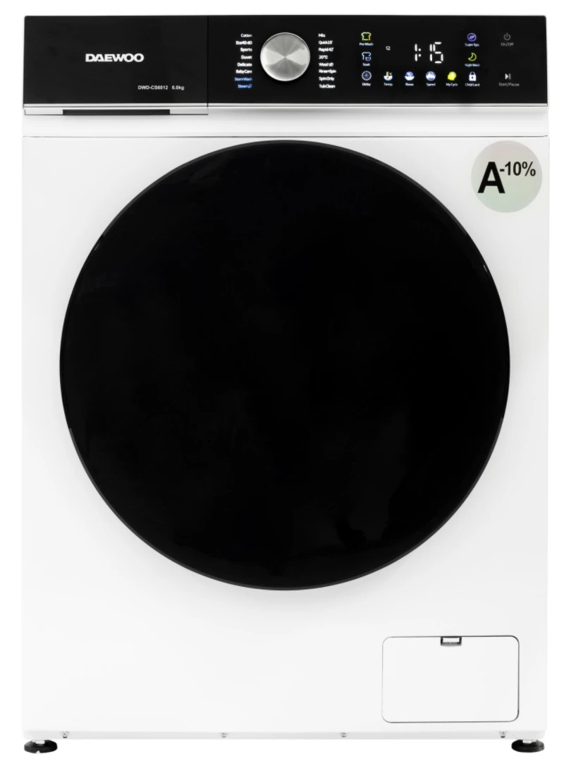 Masina de spalat rufe Daewoo DWD-CS6012, 6 kg / 1000rpm, 44cm, clasa A, motor inverter, Program Abur, 16 program, Alb