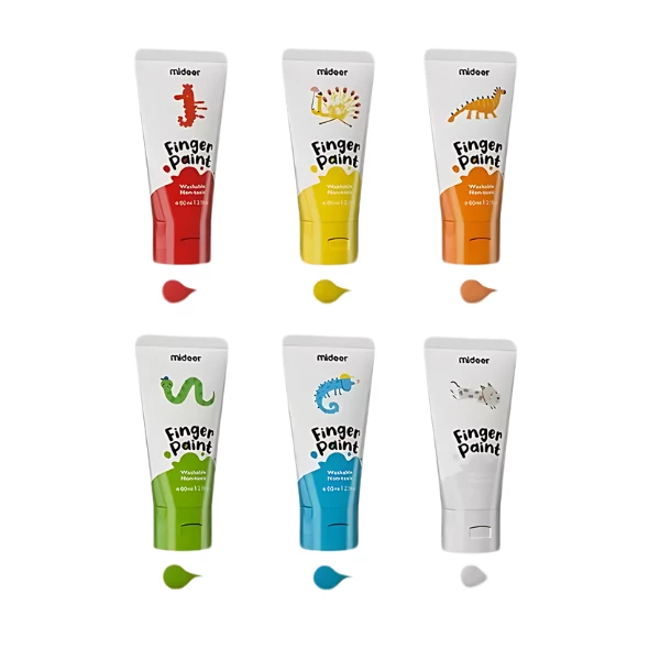 Набор для рисования пальчиками включает 6 туб с безопасной краской в различных цветах (красный, оранжевый, желтый, зеленый, синий, белый), по 60 мл каждая. Рисование пальчиками оказывает положительное влияние на нервную систему ребенка, помогает освободиться от негативных эмоций, развивает тактильное восприятие и творческое мышление. Благодаря кремообразной консистенции краски для пальчиков MiDeer не растекаются и не капают, а после рисования легко смываются с кожи и одежды ребенка. Эта художественная деятельность способствует всестороннему развитию ребенка, тренирует его визуально-моторную координацию и вдохновляет на новые художественные открытия.