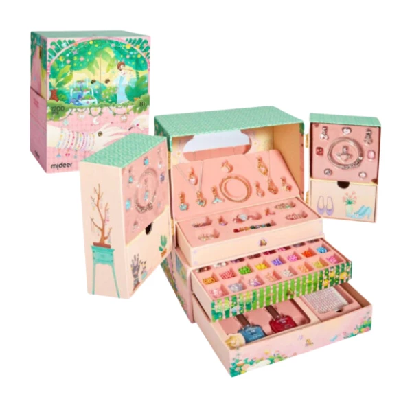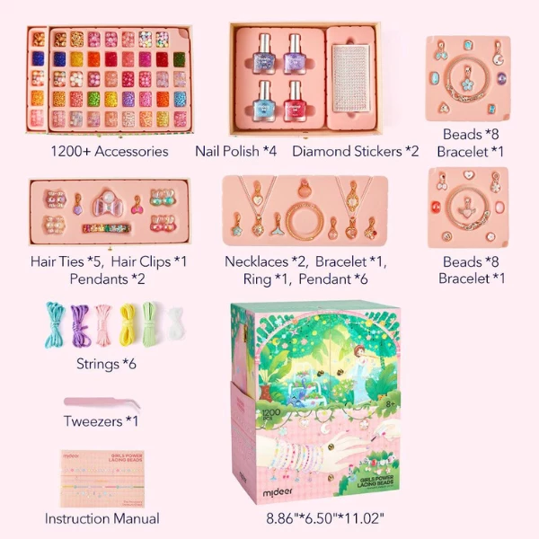 Набор "Фантастические украшения" MD1619 - это креативный комплект для детей, предназначенный для создания персонализированных украшений. В комплект входит более 1200 бусин различных цветов и форм, что предоставляет бесконечные возможности для дизайна. Также в набор входят четыре флакончика лака для ногтей с блестками, которые добавят сияния вашим изделиям, и коллекция шнурков в шести ярких цветах. Для удобства работы с бусинами прилагается пинцет, а коврик для дизайна поможет вам организовать модели перед нанизыванием. Этот набор сочетает в себе развлечение и развитие ловкости, идеально подходя для юных любителей украшений.