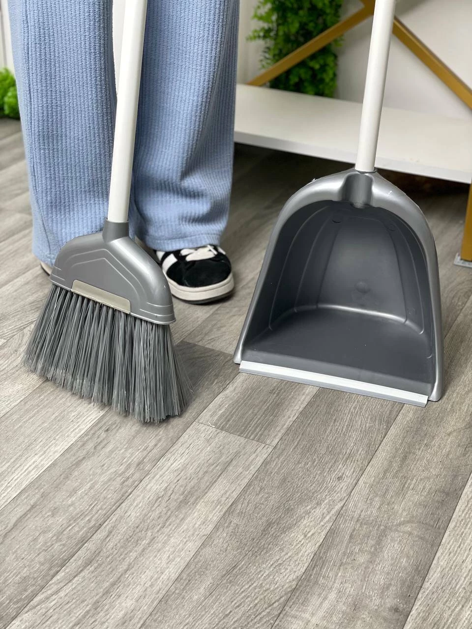 Удобный набор для уборки, состоящий из веника и совка с длинной ручкой. Подходит для сбора мусора без наклонов. Щетина прочная и гибкая, совок оснащён резиновой кромкой для удобного и чистого сбора. Легко хранится и занимает мало места.