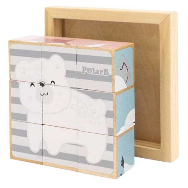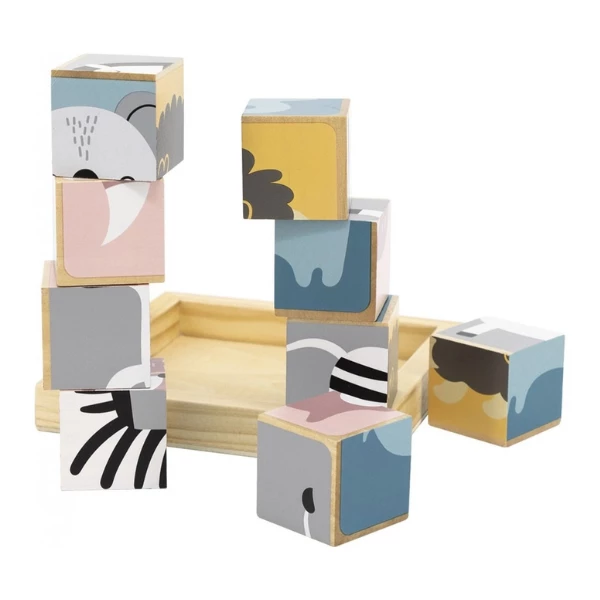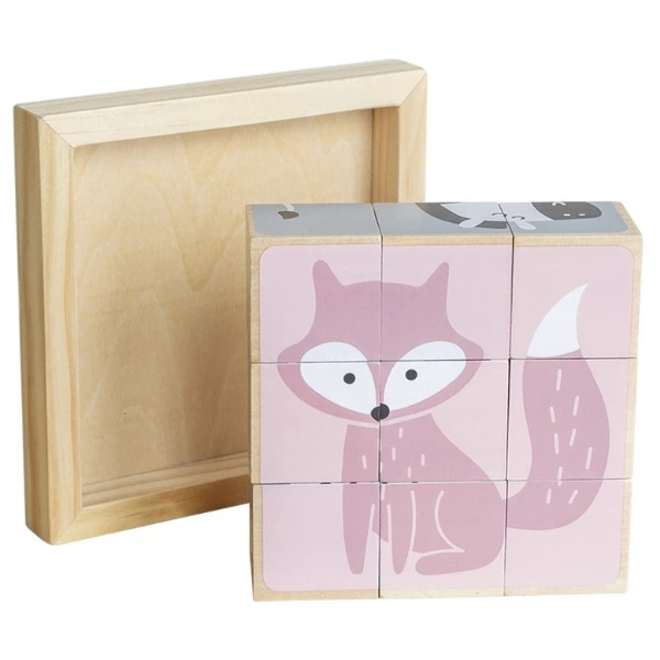 Деревянные кубики-пазл Viga Toys PolarB «Зверята» подарят малышу увлекательное времяпрепровождение и первые шаги в обучении. В наборе 9 кубиков, из которых ребенок сможет собрать на подставке 6 красочных картинок с животными: зеброй, коалой, мишкой, слоненком, лисичкой и ежиком.