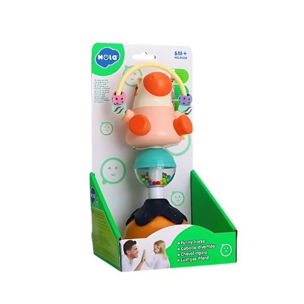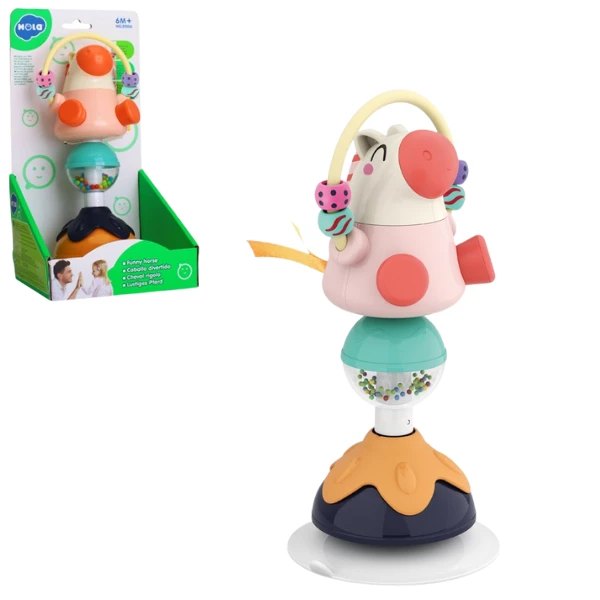 Погремушка «Лошадка» от HOLA TOYS — это идеальная развивающая игрушка для малышей от 6 месяцев. Благодаря устойчивой присоске, её легко закрепить на столике, подносе или другой гладкой поверхности — игрушка не упадёт, даже если ребёнок активно играет. Яркая лошадка с подвижными элементами и встроенной погремушкой стимулирует чувства и удерживает внимание малыша.
