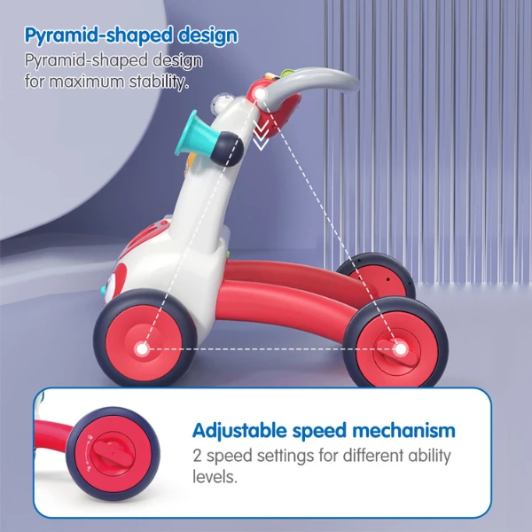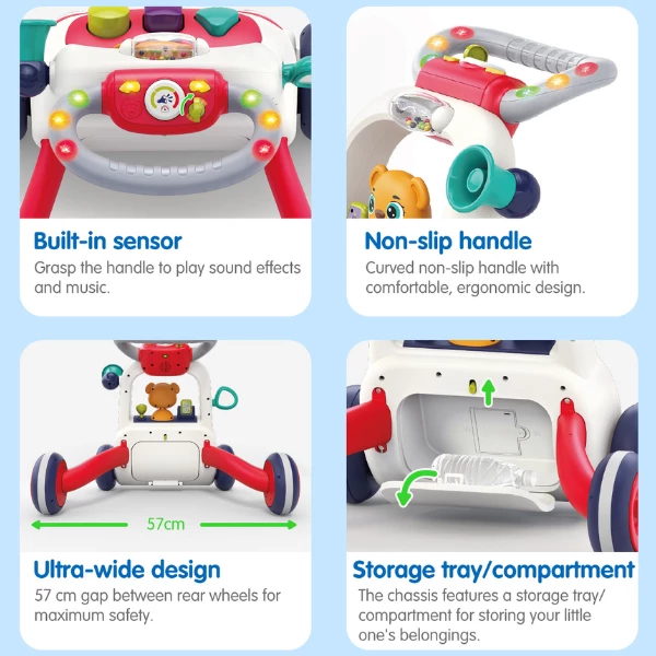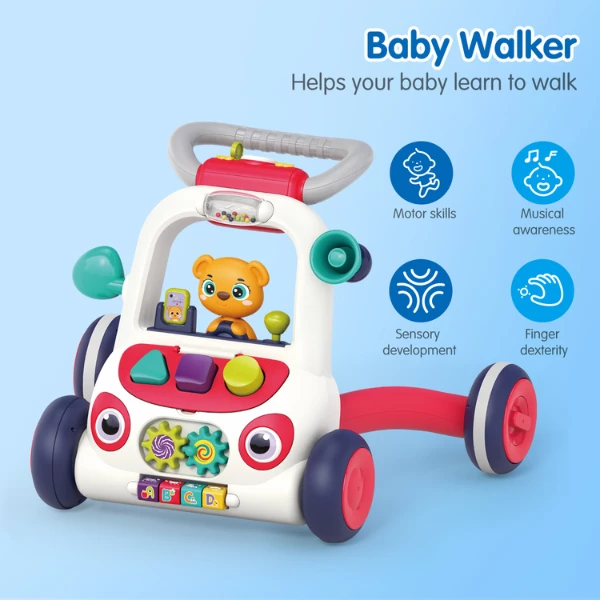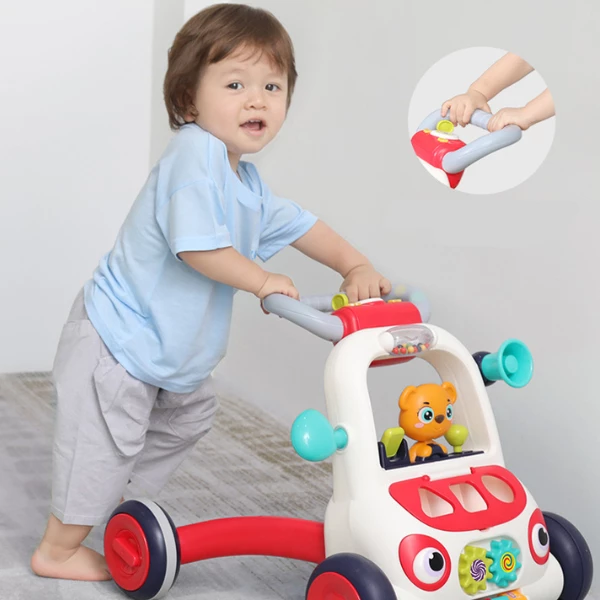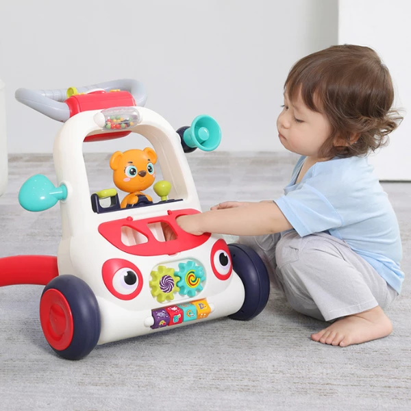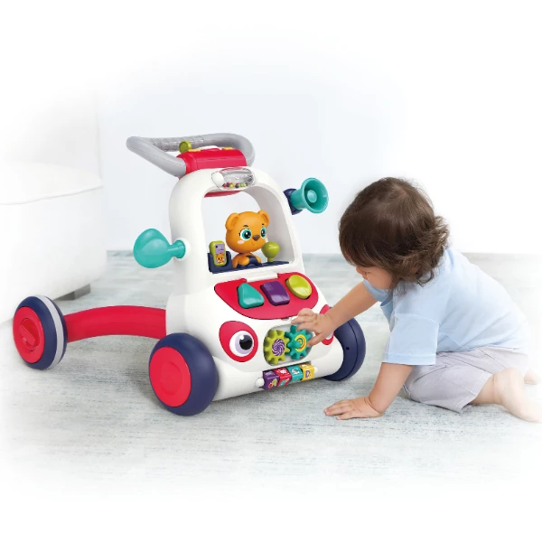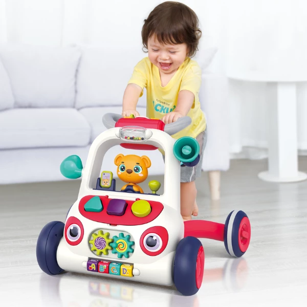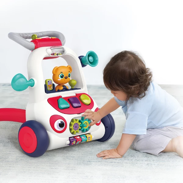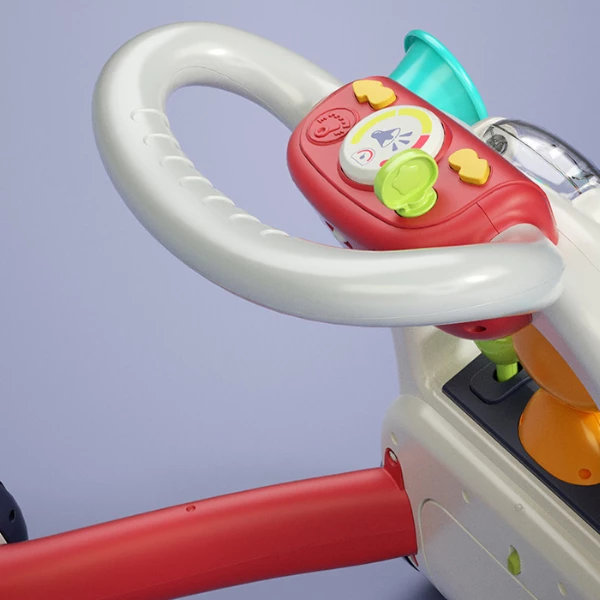 Ходунки предлагают множество различных кнопок и игрушек, которые помогают тренировать мелкую моторику через действия на скручивание, нажатие и вытягивание. Боковой рычаг переключения передач и мобильный телефон могут двигаться в разных направлениях, что также способствует развитию мелкой моторики.