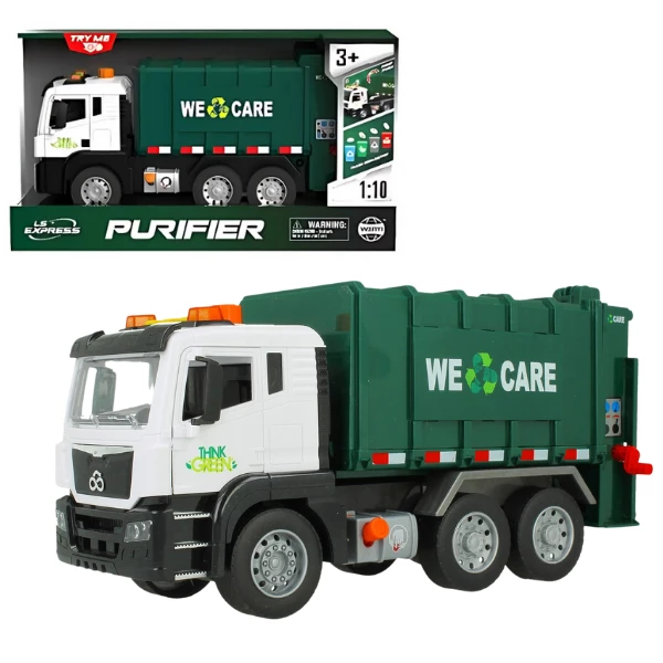 Camionul de gunoi "Friction Sanitation Truck" la scară 1:10 este o reproducere realistă a unui vehicul special pentru copiii pasionați de mașini mari. Datorită sistemului de mișcare inerțială, camionul poate fi pus în mișcare printr-o simplă împingere, adăugând dinamism și distracție în joc. Efectele luminoase și sonore creează atmosfera unui vehicul adevărat, iar pompa funcțională și ușile care se deschid oferă oportunități suplimentare de joacă. Camionul de gunoi este realizat din plastic durabil, fiind sigur și rezistent pentru o joacă activă.