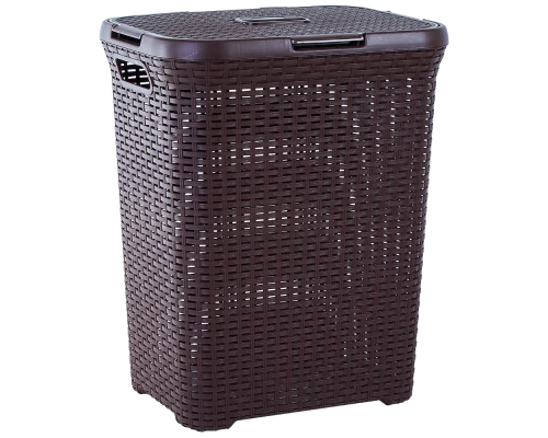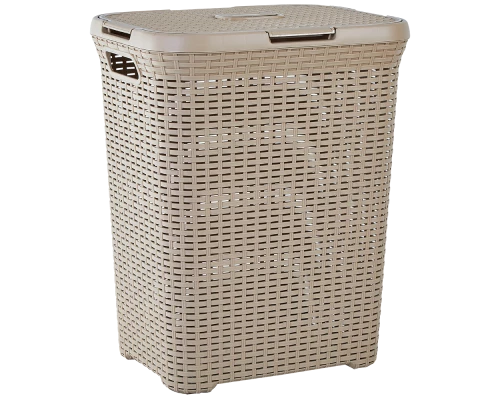 122098 Корзина для белья Rattan 50L AleanaКорзина для белья ""Ротанг"" легко и удобно организует порядок в хранении вещей. Эта модель, с имитацией плетения, позволяет воздуху хорошо циркулировать. Внешне корзина напоминает настоящую плетеную корзину, поэтому отлично впишется в любой современный дизайн. Объем корзины, 50 литров, позволяет вместить немало вещей. Гладкая внутренняя поверхность, обеспечит легкий уход и не сделает на ваших вещах затяжки. Изделие оснащено удобными ручками для переноск ...