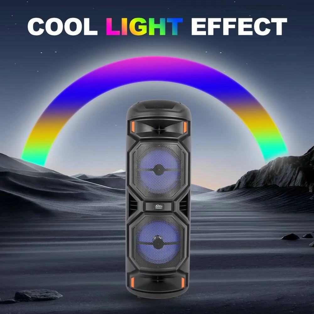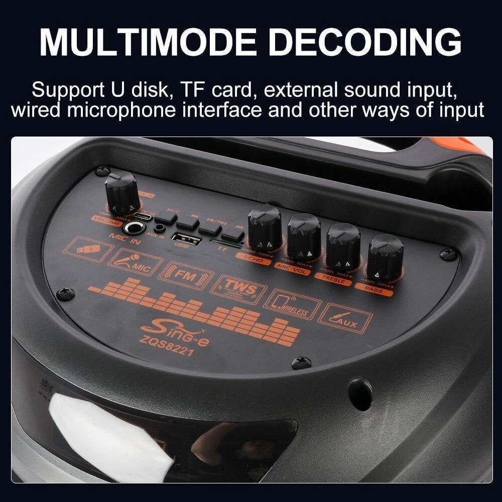 Boxa portabilă karaoke Sing-e ZQS8221 este creată pentru petreceri, karaoke, evenimente și divertisment acasă. Cu două difuzoare de 8”, efecte LED colorate și conectivitate completă (Bluetooth, USB, AUX, TF, FM), boxa oferă un sunet puternic și bass profund. Bateria integrată asigură ore întregi de muzică fără întreruperi, iar microfonul inclus permite sesiuni de karaoke pentru toată familia.