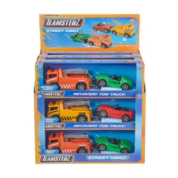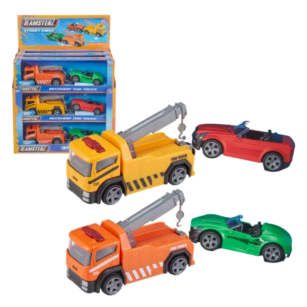 Setul de joacă Teamsterz „Camion de remorcare cu mașină” de la brandul HTI este cadoul perfect pentru micii pasionați de vehicule! Pachetul include un camion de remorcare cu cârlig mobil și o mașină de pasageri.