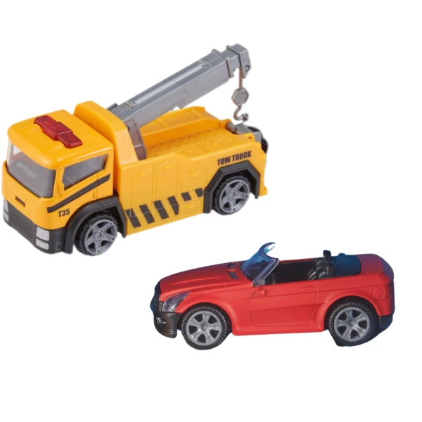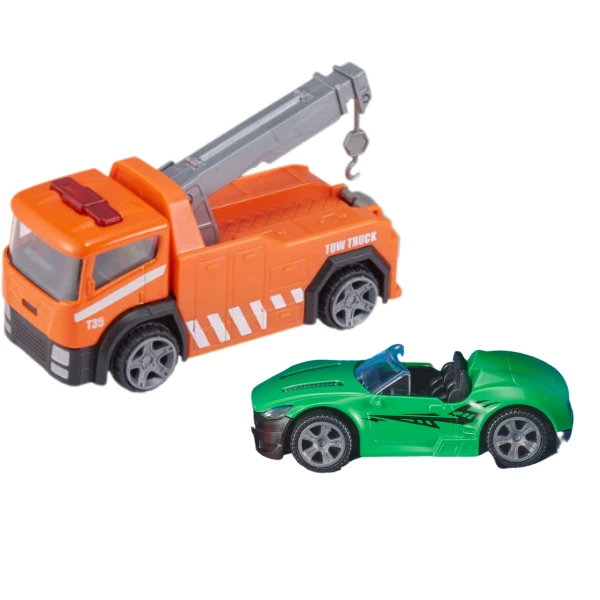 Camionul de remorcare poate transporta orice mașină „stricată” în siguranță sau chiar duce „contravenienții” direct la parcarea specială. Caroseria metalică și roțile libere oferă realism, durabilitate și ore întregi de distracție imaginativă.