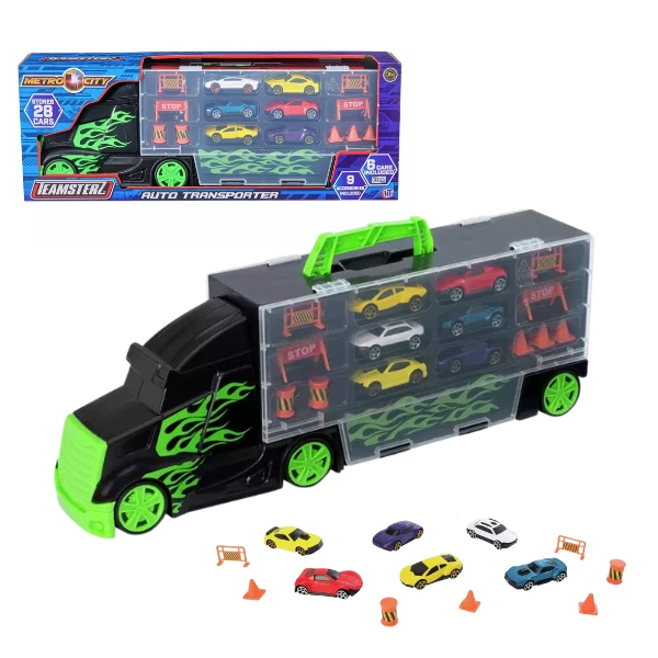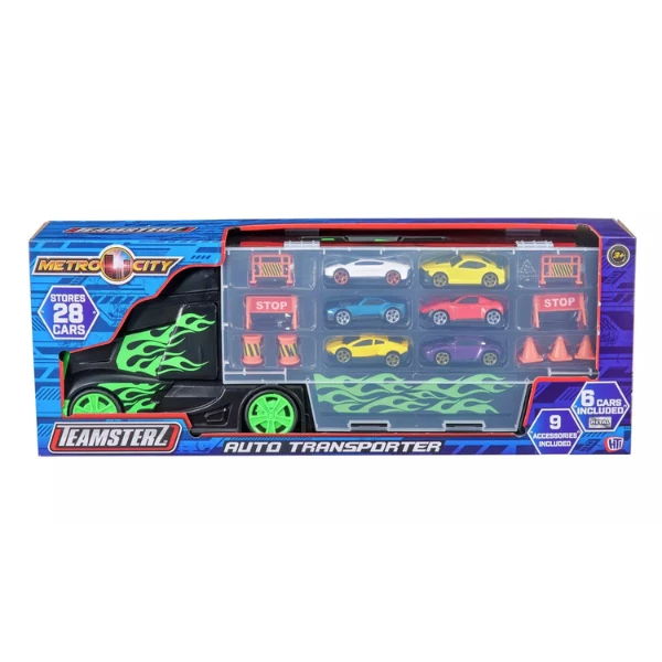Transportă-ți mașinuțele preferate Teamsterz cu Teamsterz Metro City Medium Auto Transporter! Acest transportor rezistent, cu mâner pentru transport și roți libere, este cadoul perfect pentru micii pasionați de mașini.