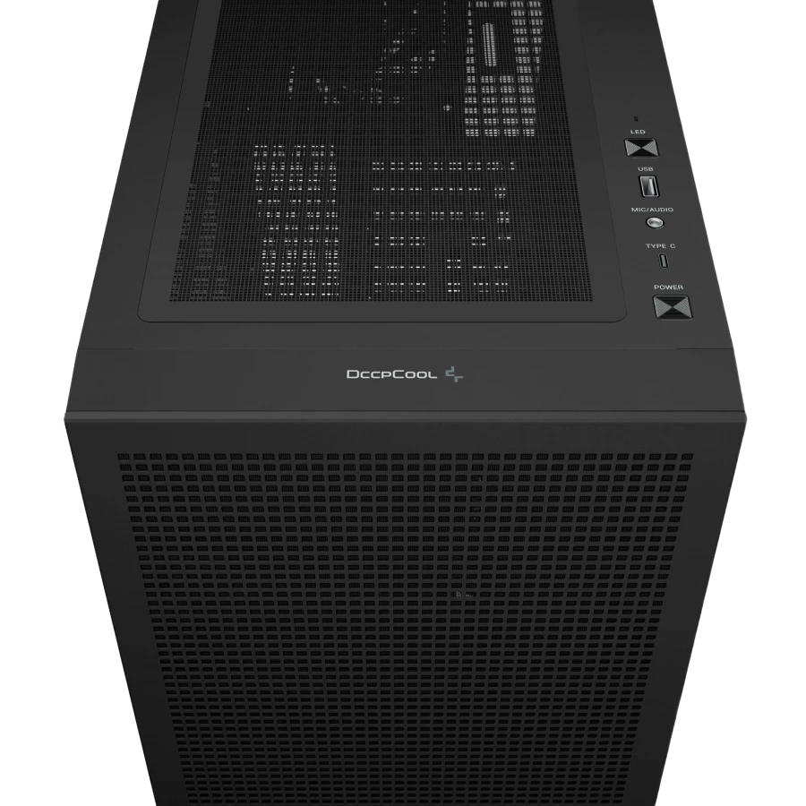 Suport ventilator: Față: 3×120 / 3×140mm, Sus: 3×120 / 2×140mm, Spate: 1×120 / 1×140mm