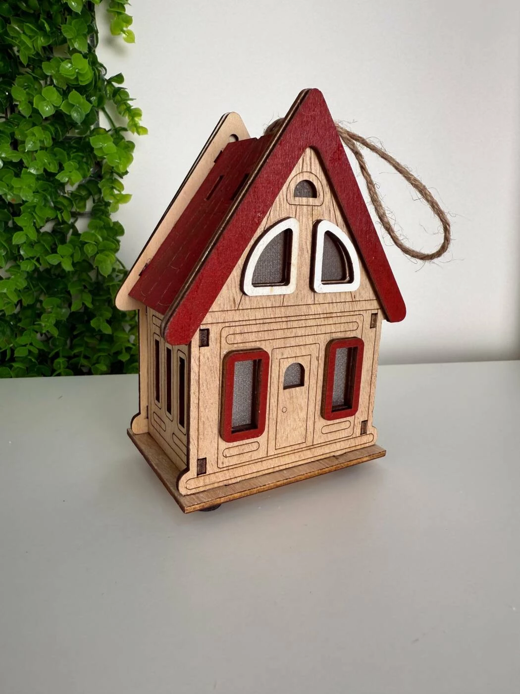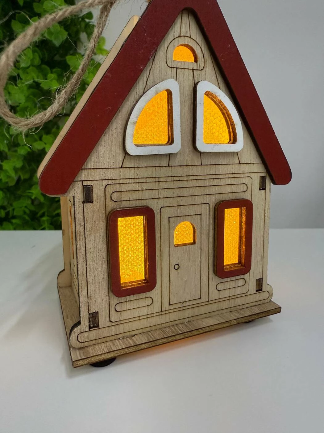 Această căsuță decorativă din lemn cu lumină LED este un accesoriu deosebit pentru decorul de iarnă sau pentru a adăuga o notă caldă și primitoare în orice încăpere. Realizată din lemn, cu detalii fine și acoperiș roșu, căsuța are ferestre translucide prin care se revarsă o lumină galbenă caldă, creând o atmosferă plăcută și festivă.