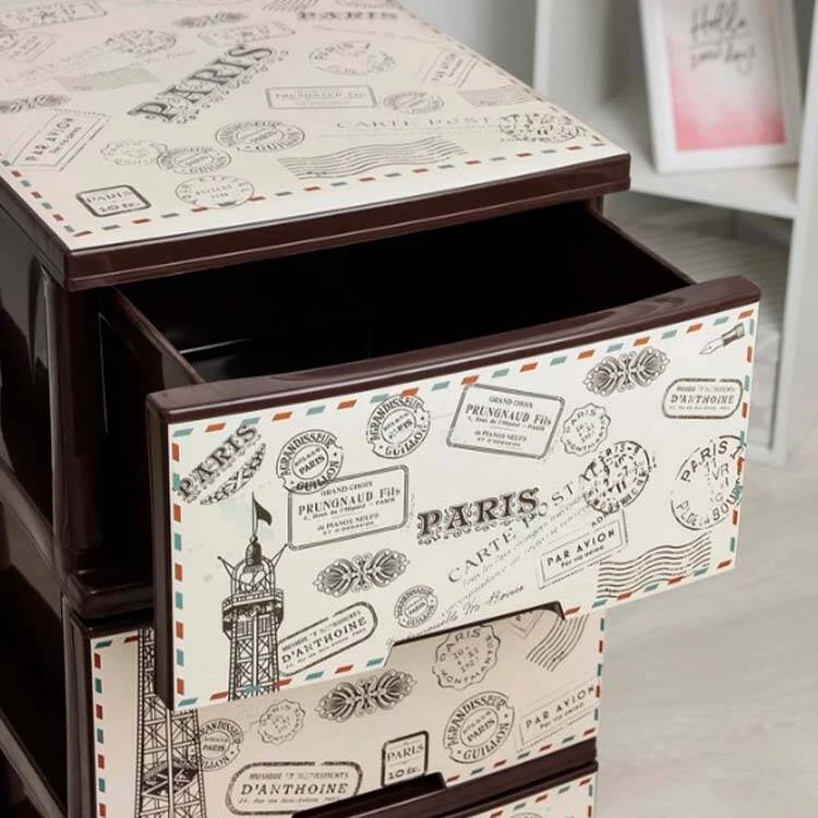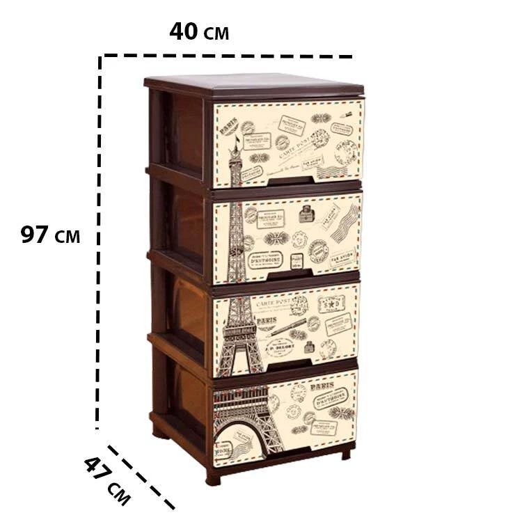Acest comod elegant cu 4 sertare, decorat cu motive Parisiene, aduce un plus de stil și rafinament oricărei încăperi. Ilustrațiile inspirate din călătorii, timbre poștale și Turnul Eiffel îl transformă într-o piesă decorativă unică, perfectă pentru dormitor, living, birou sau camera tinerilor.