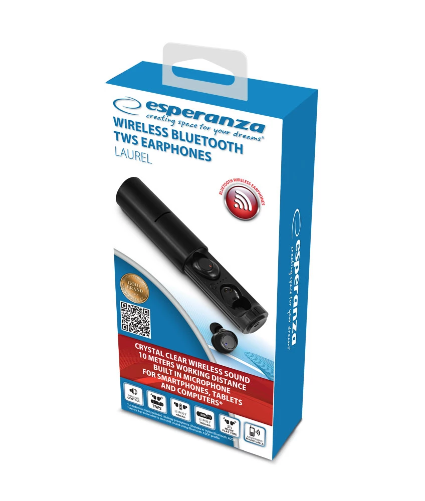 Earphones Bluetooth Esperanza LAUREL EH227K, talking time: up to 4h, Music playing time: up to 3h, Charging time: around 1h, Bluetooth: v.5.0