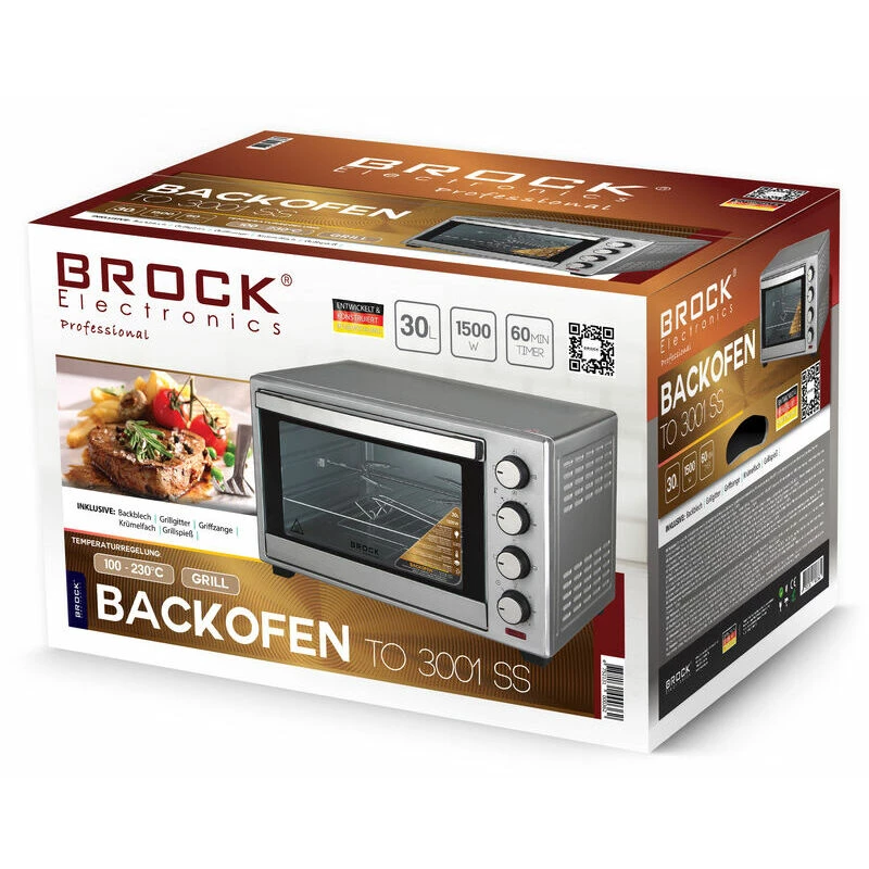 Electric Oven BROCK TO 3001 SS 30L, Gray, 1600W, Convection function, Grill rotisserie function, Double glass, Temperature: 100°C - 230°C, Heating fu
