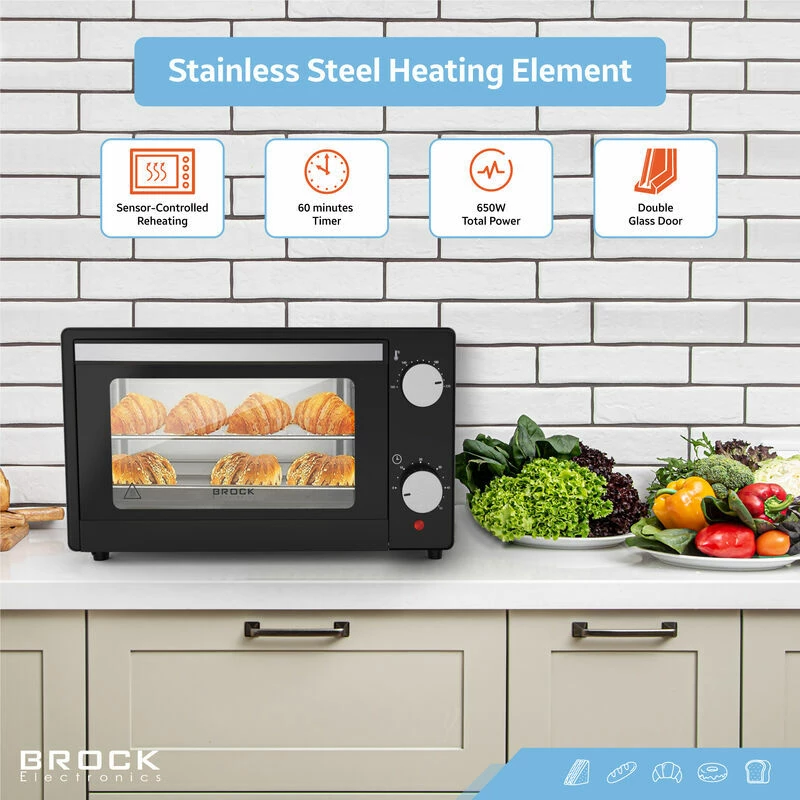 Electric Oven BROCK TO 9001 B 9L, 650W, 2 quartz heating tubes, Double glass, Temperature: 100°C - 230°C, acc: (baking tray, tray, handle)