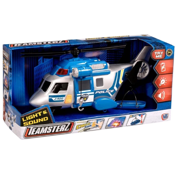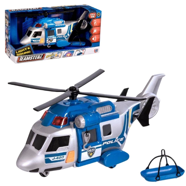 Elicopterul de salvare al poliției Teamsterz - este o jucărie captivantă pentru copii, potrivită atât pentru joaca în casă, cât și în aer liber. Modelul compact se remarcă printr-un design luminos și dinamic, iar efectele luminoase și sonore fac jocul cât mai realist.