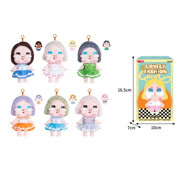 Pătrundeți în lumea emoțiilor la modă cu colecția de figurine CRYBABY din seria „Lovely Fashion”. Fiecare figurină reprezintă un personaj miniatural îmbrăcat într-o ținută elegantă, cu față expresivă din vinil. Aceste pandantive sunt perfecte pentru decorarea genților, rucsacurilor, cheilor sau ca element decorativ.