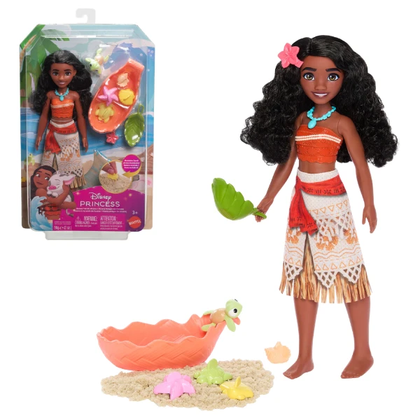 Păpușa Disney Princess Ocean Friends Moana este inspirată din eroina filmului Disney „Moana”. Păpușa poartă ținuta ei caracteristică, cu fustă detașabilă și colier, plus un accesoriu floral pentru păr.