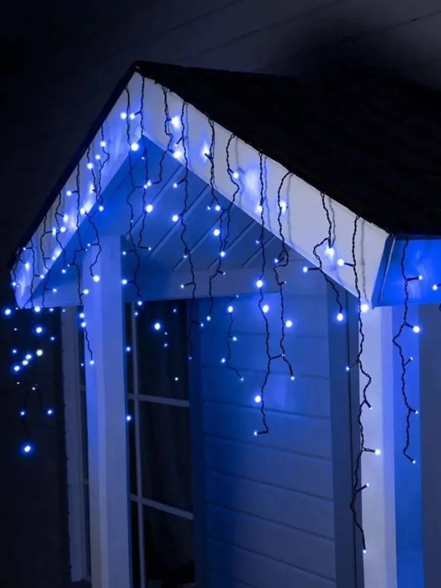 Această ghirlandă tip bahroma este alegerea ideală pentru decorul exterior în sezonul rece. Cu lumini LED albastre intense și fir negru discret, ghirlanda creează un efect spectaculos de „turturi luminoși”, perfect pentru acoperișuri, balcoane, streșini și terase.