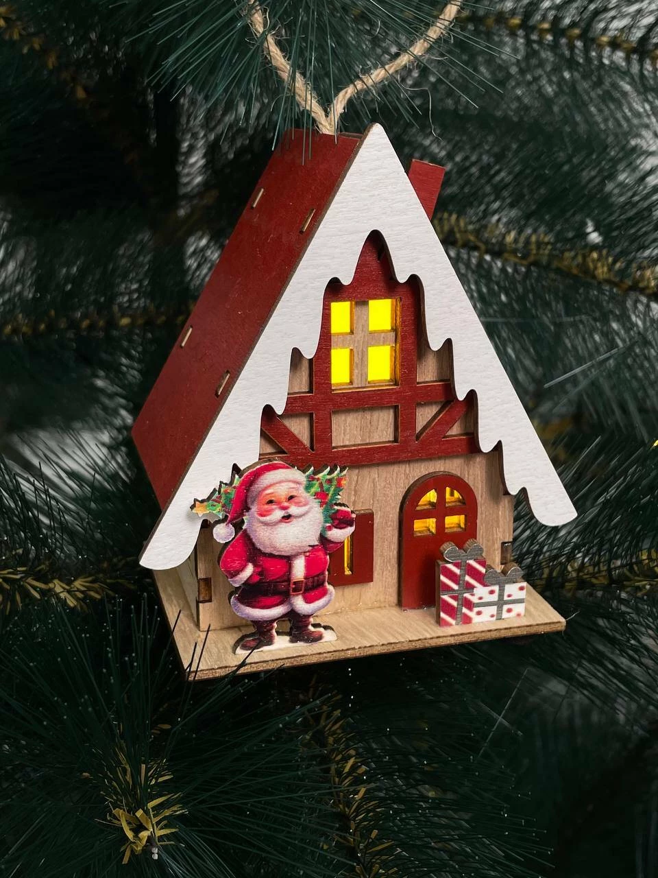 Această decorațiune de brad în formă de căsuță din lemn aduce un farmec autentic sărbătorilor de iarnă. Realizată cu detalii fine și acoperiș cu efect de zăpadă, piesa este completată de o fereastră luminată cu LED cald, care creează o atmosferă magică în pomul de Crăciun.