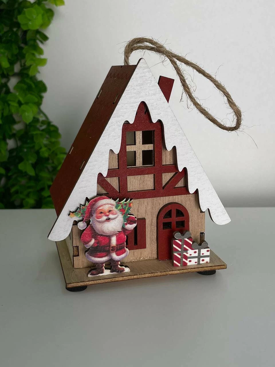 Moș Crăciun decorativ, plasat în fața căsuței împreună cu mici cadouri festive, adaugă un plus de veselie și culoare. Agățătoarea din sfoară permite plasarea ușoară în brad sau în decorurile de perete, ferestre sau rafturi.