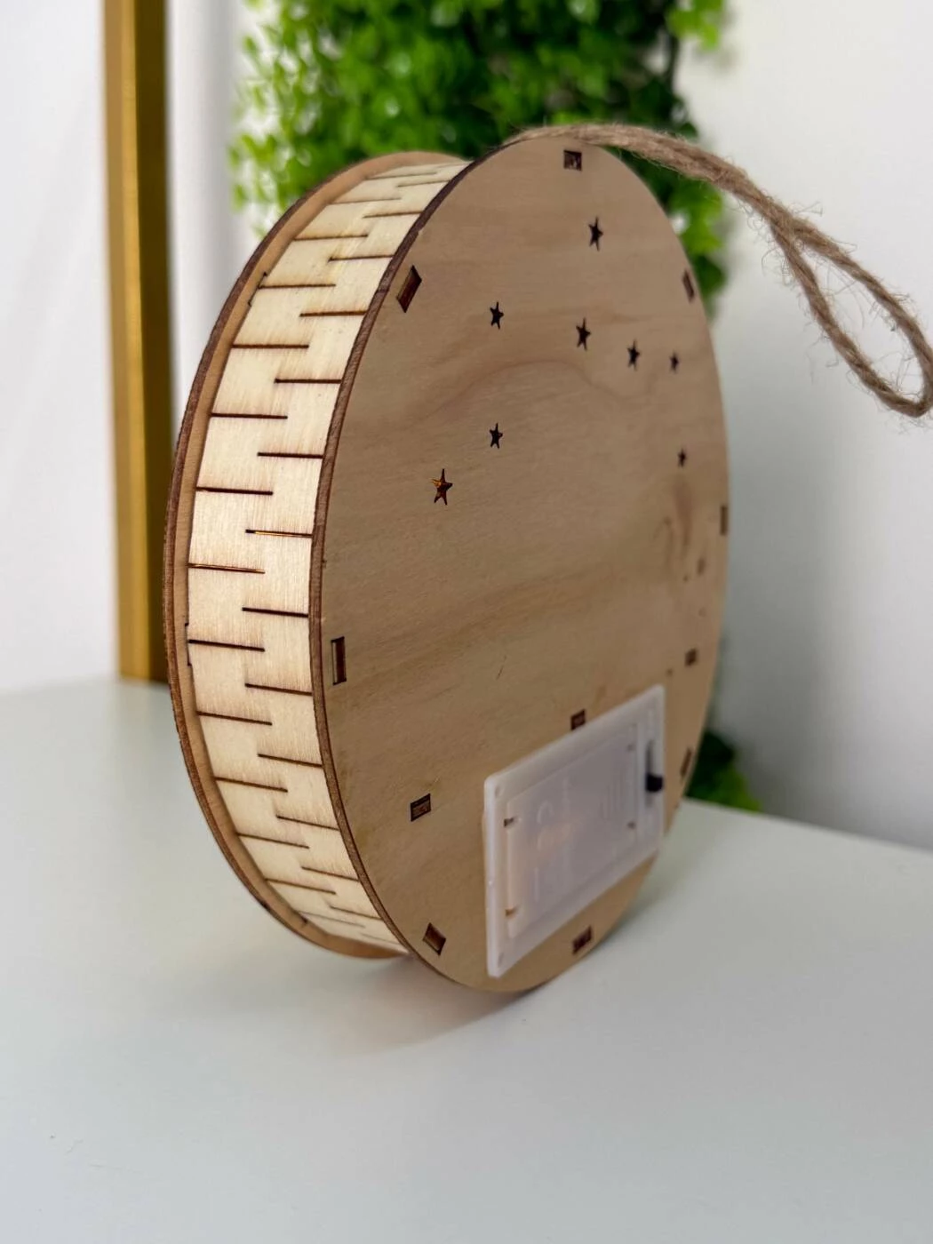Acest glob decorativ din lemn cu lumină LED aduce farmecul sărbătorilor în orice încăpere. Realizat din lemn și decorat cu un peisaj de iarnă– un pitic vesel, brăduți și reni – globul emană o lumină caldă și plăcută, perfectă pentru a crea o atmosferă de Crăciun liniștită și magică.