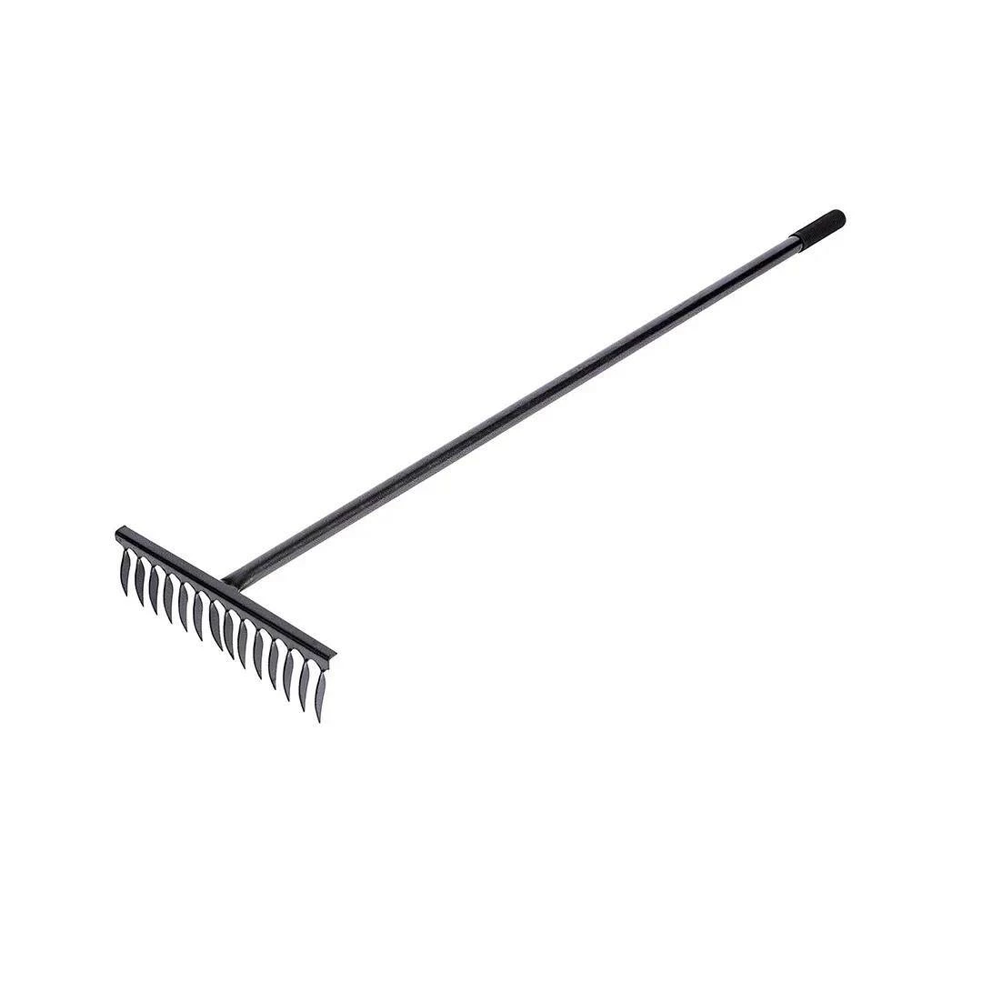 CeI 14 dinți din metal întărit oferă o penetrare uniformă a solului, facilitând nivelarea, curățarea și afânarea terenului, precum și strângerea frunzelor, ierbii sau resturilor vegetale. Mânerul metalic lung, oferă o priză sigură și control precis în timpul lucrului.