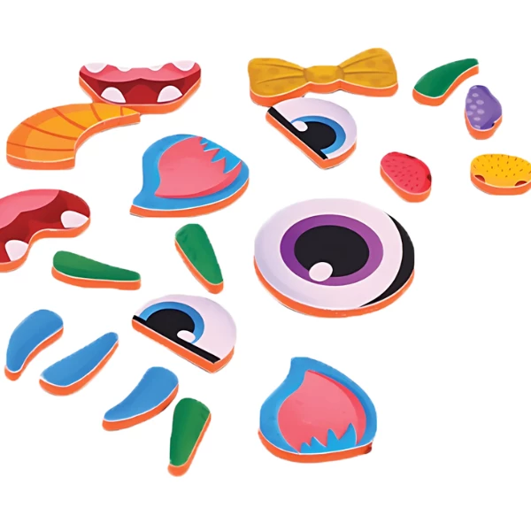 41 de piese magnetice (ochi, nas, gură, urechi și alte părți ale monstrului).