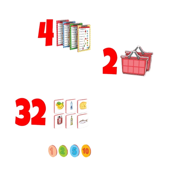 Acest joc educativ a fost creat pentru a ajuta copiii să învețe conceptul de cumpărături și bani.