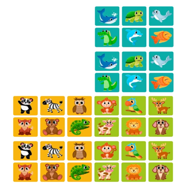 Găsește perechile identice de animale. Câștigă cel care găsește cele mai multe perechi!
