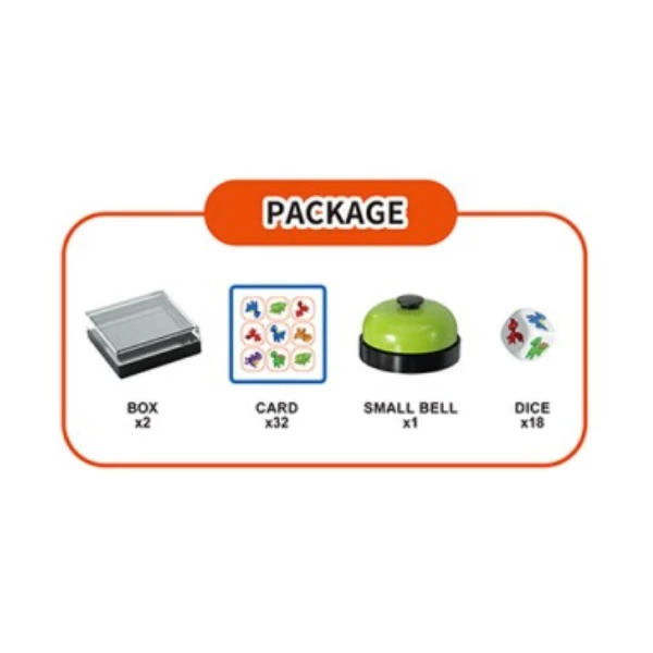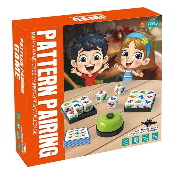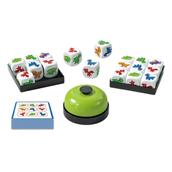 Jocul de masă „Dino-Match” este o competiție distractivă de viteză, atenție și memorie. Aruncă zarurile, găsește cardurile corespunzătoare cu dinozauri și apasă soneria mai repede decât adversarii! Jocul ajută la dezvoltarea logicii, percepției vizuale și reflexelor, transformând învățarea într-o aventură plină de voie bună.