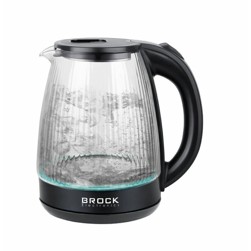 Kettle BROCK WK 2405, Glass Black with LED light, 1500W, 1,8l, concealed heating element, 360° swivel base, auto shut-off after boiling