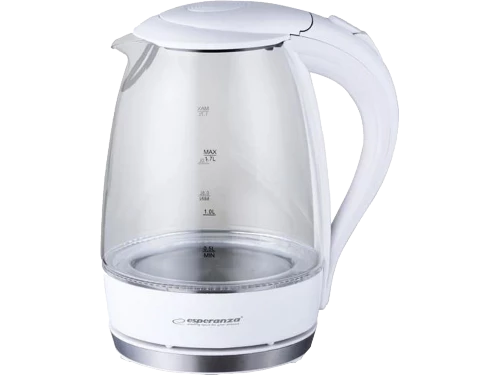 Kettle Esperanza SALTO ANGEL EKK011W Glass White with LED light, 2200W, 1,7l, concealed heating element, 360° swivel base, auto shut-off after boiling