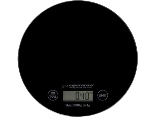 Kitchen Scale Esperanza MANGO EKS003K Black Touch buttons, Maximum capacity: 5000g, Division: 1g, Four units of measure: g /lb/oz/kg, Tare Function, Overload indicator, Low battery indicator, Power: 1xCR2032 lithium battery