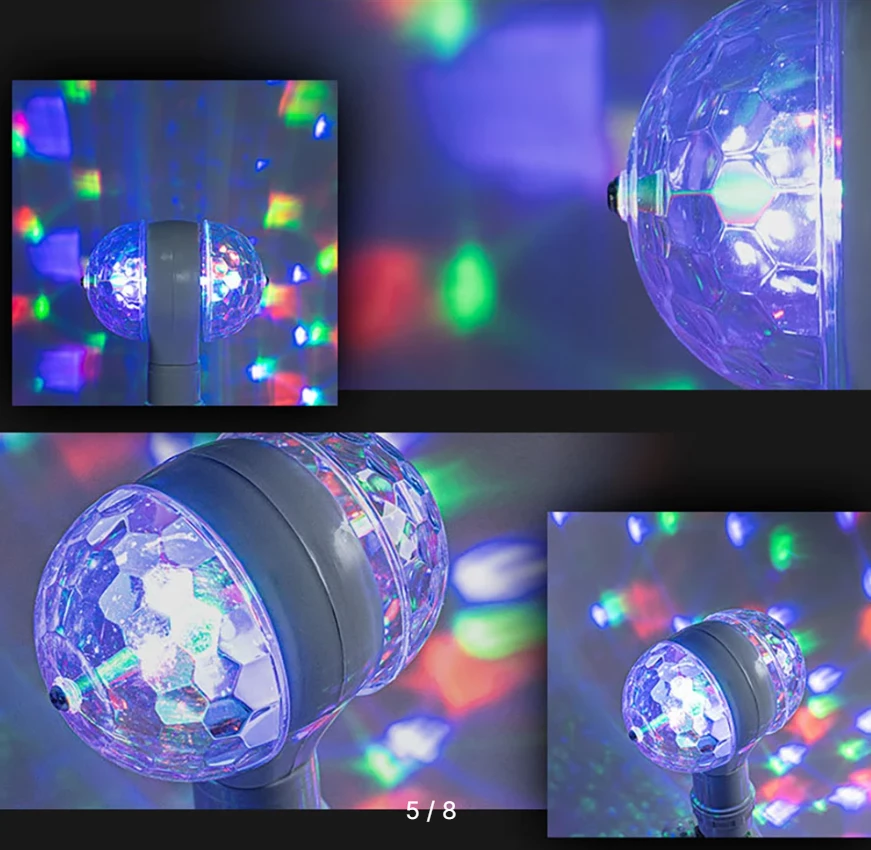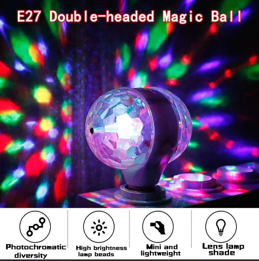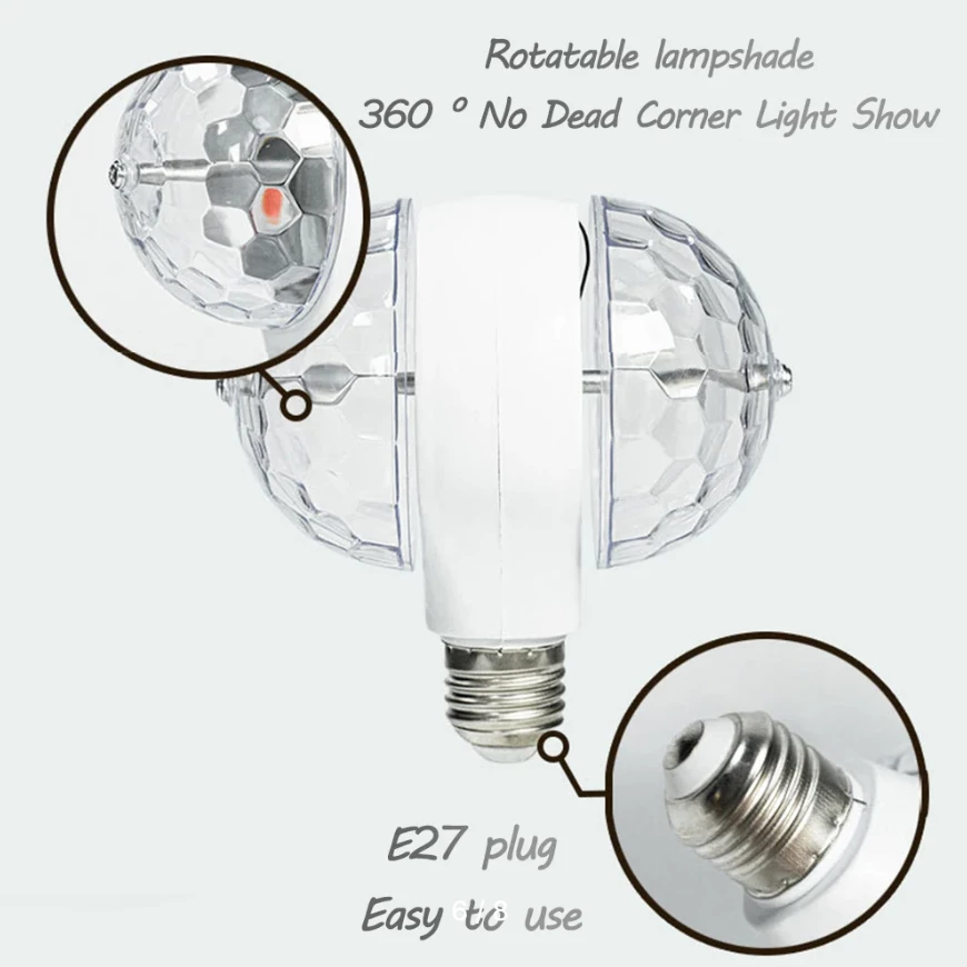 Transformă orice cameră într-o mini-discotecă cu lampa rotativă LED dublă E27! Proiectată cu două globuri rotative 360°, aceasta creează un joc spectaculos de lumini RGB, perfect pentru petreceri acasă, camere de copii, evenimente sau decor ambiental. Se montează ușor în orice dulie E27 și luminează automat imediat după conectare. Designul mini, greutatea redusă și consumul mic de energie o fac ideală pentru utilizare zilnică.