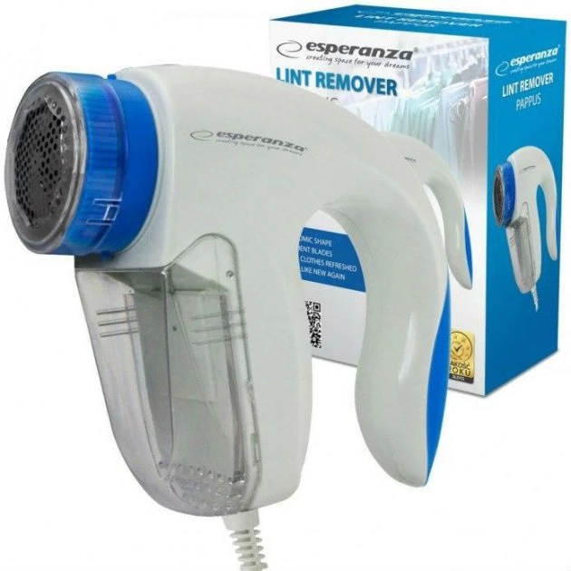 Lint Remover Esperanza PAPPUS ECS006 White-Blue; 3 blades for quick lint removing; Size: 16 cm * 13 cm * 6 cm; Power: mains; 220 V ~ 50/60 Hz, 4 W