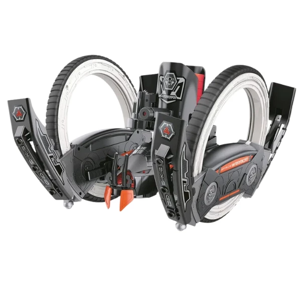 Viteza maximă ridicată a jucăriei este obținută datorită unui motor electric puternic. Construcția specială a roților asigură o trecere excelentă și permite mașinii să se deplaseze chiar și pe suprafețe alunecoase, lipicioase și inegale. Mașina-robot trage cu rachete moi și sigure, care nu vor răni pe nimeni, dar vor deveni perfecte pentru luptele cu alte jucării. Iluminarea LED strălucitoare și efectele sonore realiste intensifică și mai mult experiența jocului.